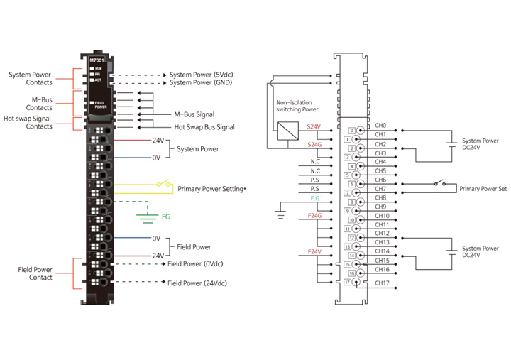 Напряжение питания: номинальное = 24 В * Диапазон напряжения полевого питания отличается в зависимости от модуля расширения |